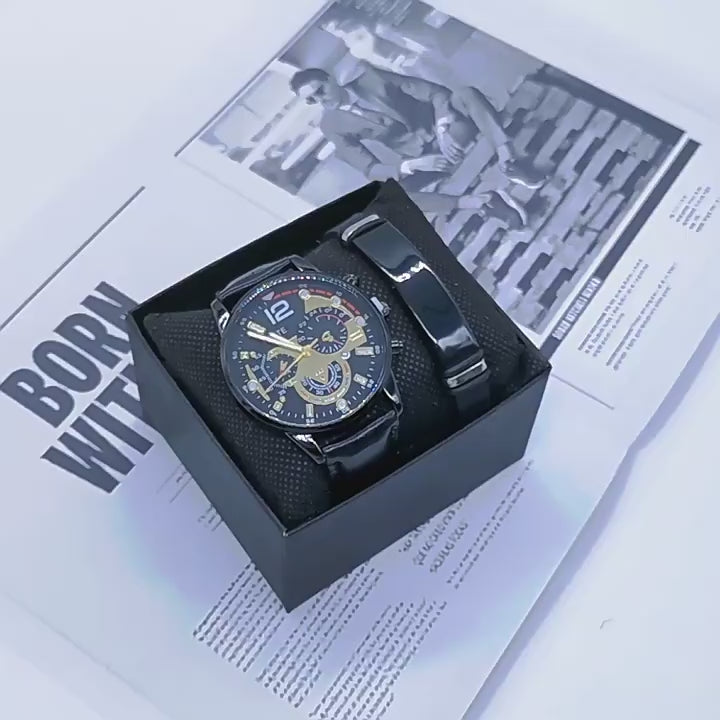 Men’s Wristwatch & Bracelet Set – New Style Fashion Business Gift Watch